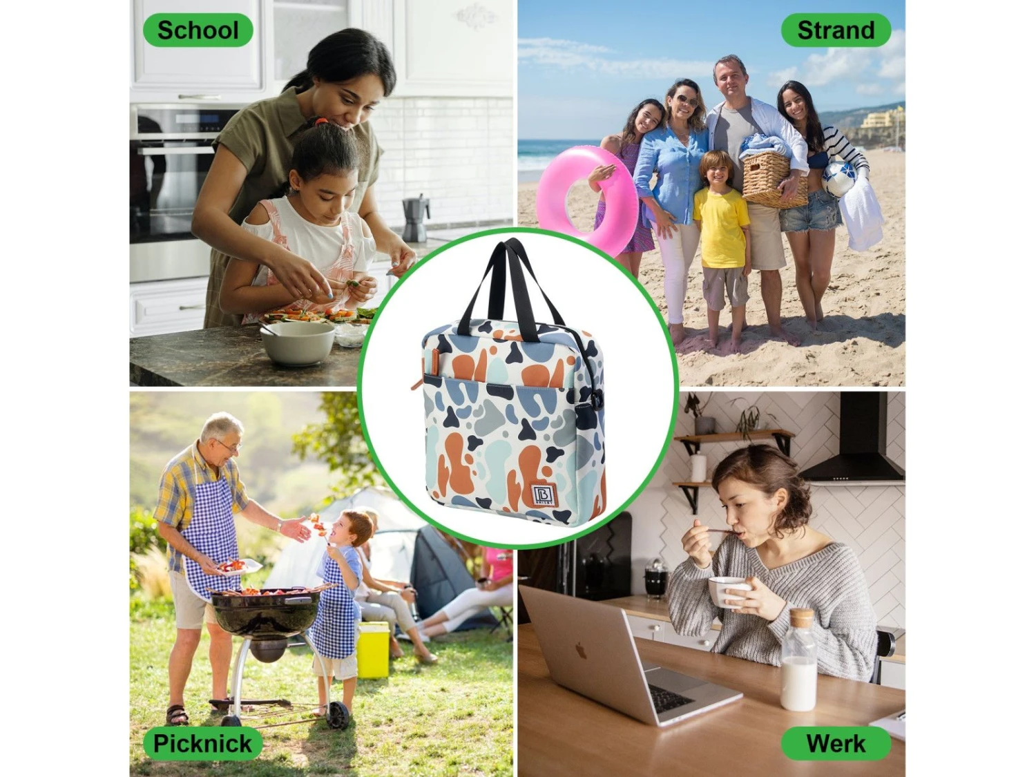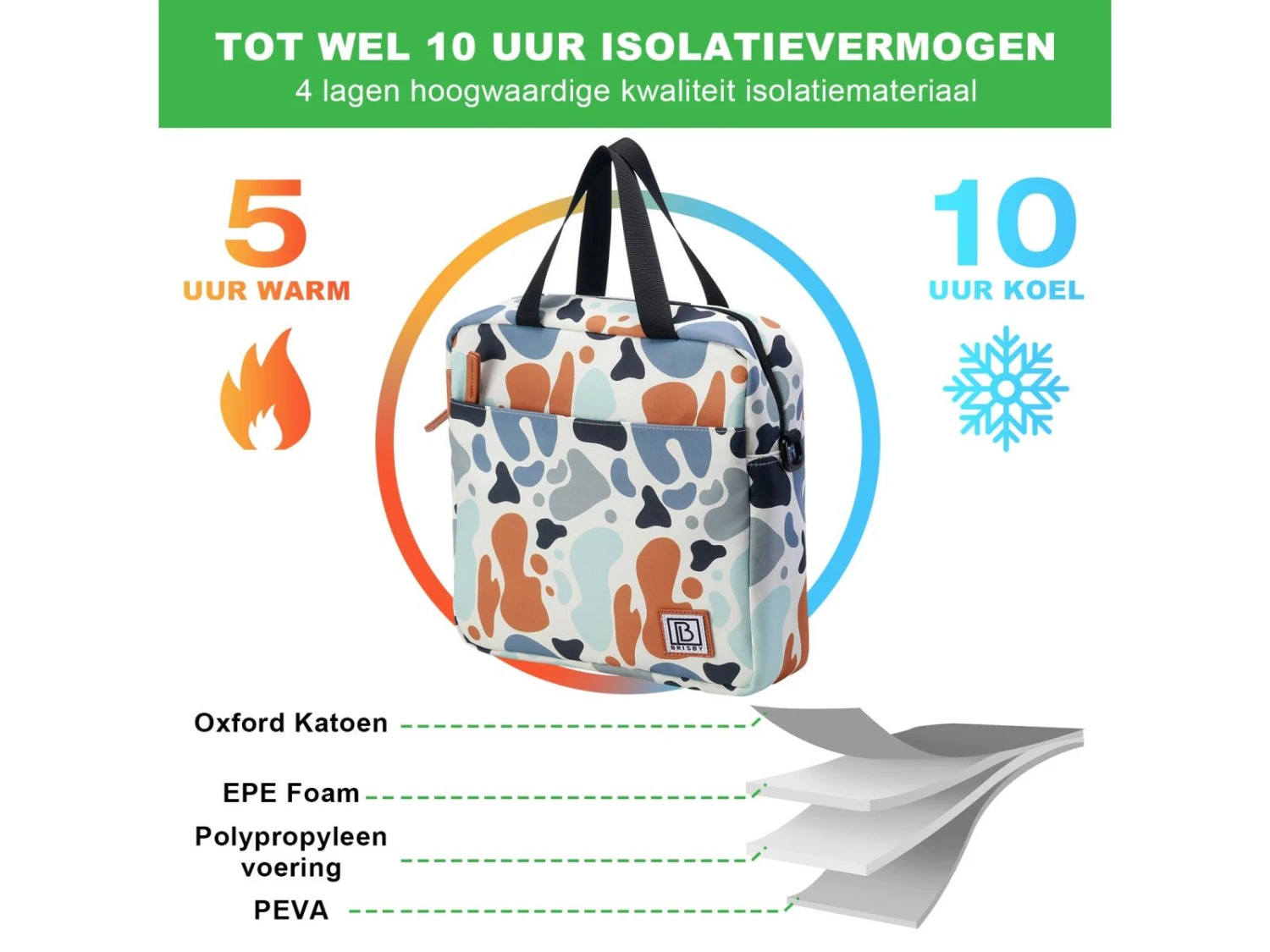 Ben je op zoek naar een topkwaliteit koeltas? Brisby 4 Laags Geïsoleerde Koeltas – Lunchtas 7 liter – Palette – Lunchtas voor onderweg – Inclusief schouderband – 2 gratis koelelementen van 200 ML.Wil jij je lunchpakket koel bewaren? Dat is mogelijk met deze slimme koeltas van Brisby. De veelzijdige lunchbox is geschikt voor je werk, school, vakantie en vrije tijd, en heeft een totale inhoud van 7 liter. De inhoud blijft tot wel 12 uur koel en vers, en dus hoef je eten en drinken niet in de koelkast te leggen. Bij aankoop ontvang je namelijk twee gratis koelelementen. Bovendien heb je je eten en drinken altijd bij de hand, want er is ook ruimte voor een flinke drinkfles. De alles-in-een tas beschikt tevens over een opbergvak aan de voorzijde voor bijvoorbeeld je sleutel, telefoon en portemonnee. Op die manier heb je alles binnen handbereik. Wat wil je nog meer? Maak een lange wandeling, neem de tas mee op vakantie of gebruik hem iedere dag voor je werk.• Koelen en warm houdenMet de lunchtas is het mogelijk om voedingswaren zowel te koelen als warm te houden. Een uitkomst tijdens ieder seizoen van het jaar.• Comfortabele handvatten en schouderbandJe bent verzekerd van optimaal draagcomfort dankzij de schouderband en de dubbele comfortabele handvatten. Ideaal als je naar je werk loopt of een wandeling maakt in het bos.• Slijtvaste buitenzijdeDe buitenzijde is slijtvast en gemaakt van waterafstotend materiaal met een hoge dichtheid. Wees dus niet bang als je overvallen wordt door een plotselinge regenbui.• Afneembare binnenzijdeDe binnenzijde van de koeltas is eenvoudig afneembaar en op die manier is hij gemakkelijk schoon te houden. Zo kan je de lunchtas gedurende langere tijd gebruiken voor allerlei doeleinden.• Meerdere isolatielagenHet koelvak van de lunchtas beschikt over een dikke laag hoogwaardig PEVA-folie. Zo blijft de inhoud tot wel 12 uur koel. Neem daarom gerust je lunchpakket of vers fruit mee naar je werk, school of tijdens een uitstapje op vakantie.
