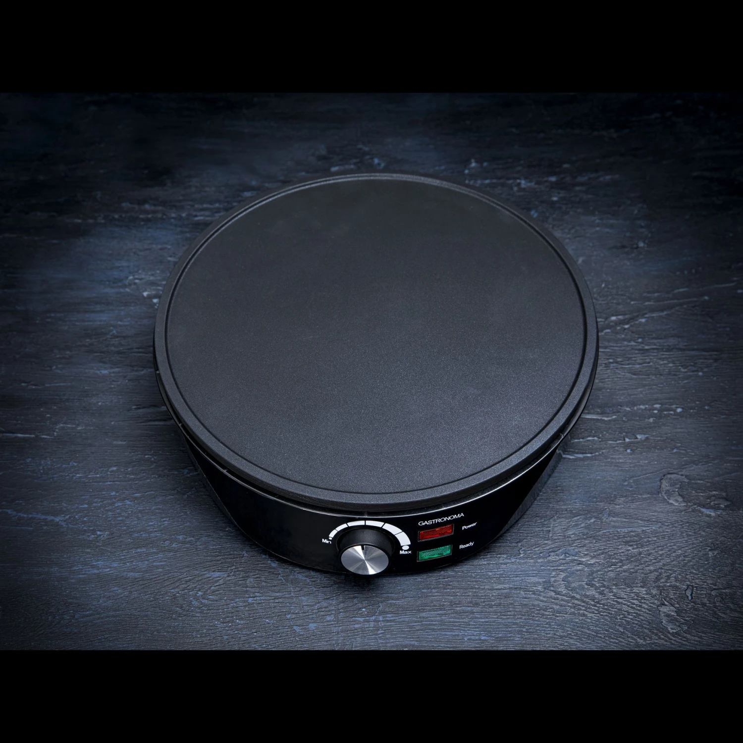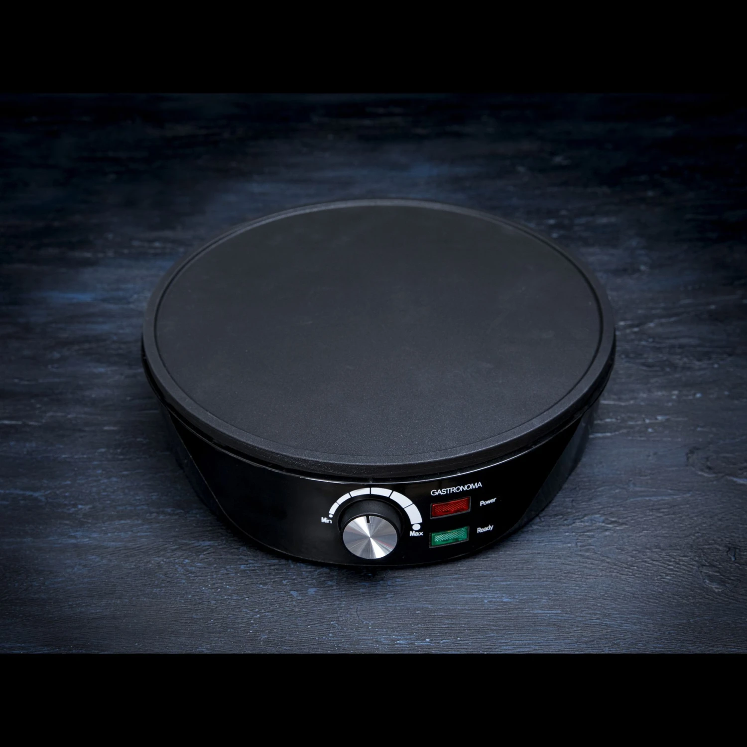 Het pannenkoekenijzer is voorzien van een instelbare temperatuurkiezer, waarmee je gemakkelijk de baktemperatuur kunt regelen om de pannenkoeken precies naar jouw smaak te bereiden. Met een diameter van 30 cm is het ijzer ruim bemeten, en het wordt geleverd met een deegspatel en spatel om de pannenkoeken moeiteloos om te draaien. Dankzij de antisliplaag blijft het beslag niet plakken en is het ijzer eenvoudig schoon te maken.