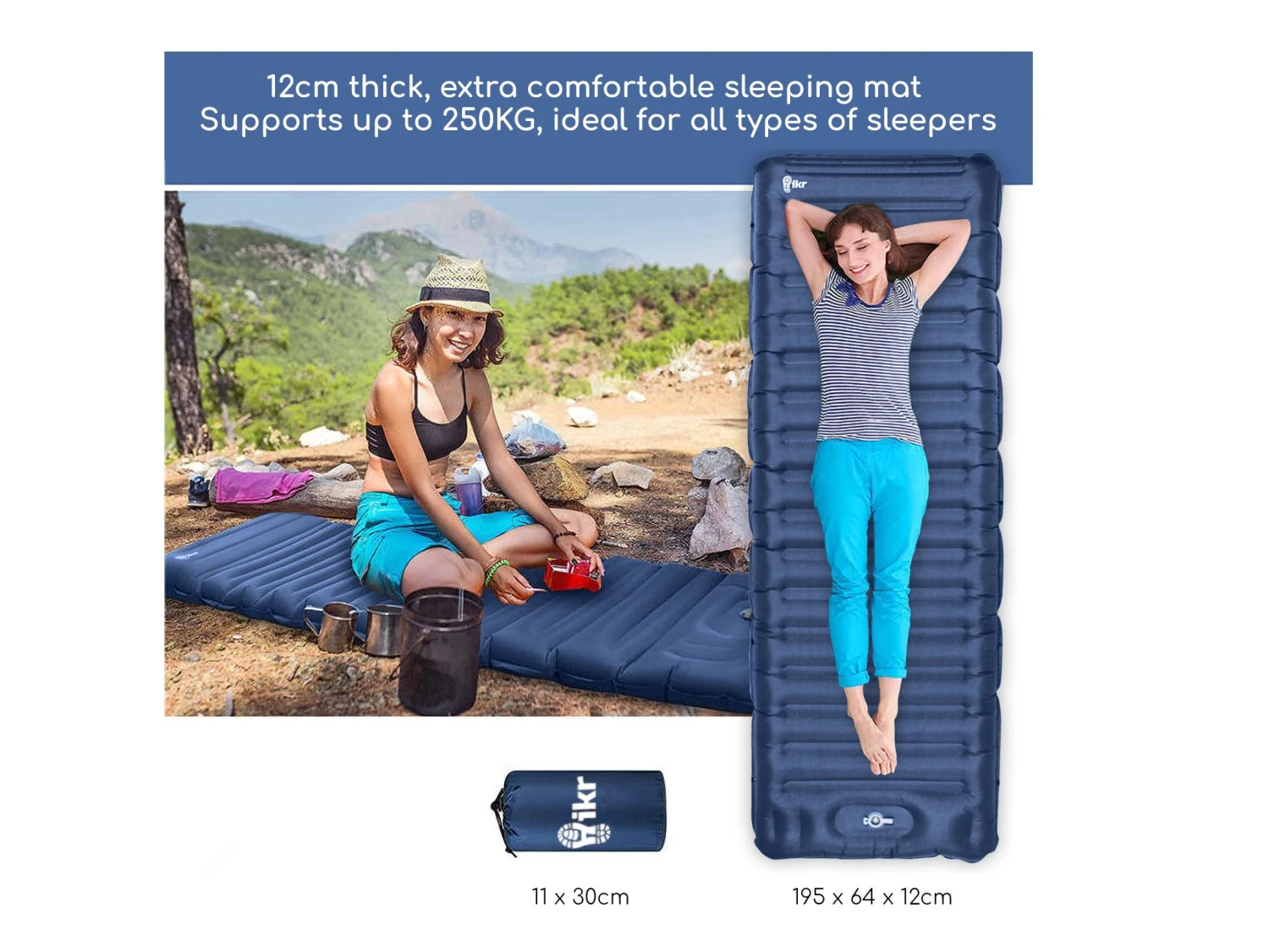 Deze Hikr slaapmat is multifunctioneel. Zo kan je de mat gebruiken als comfortabele slaapmat tijdens het kamperen of als luchtmatras voor een ontspannen dag op het water!