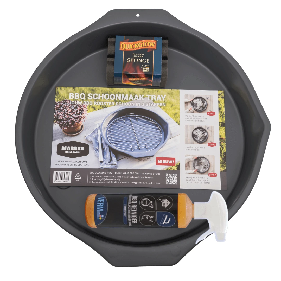 BBQ-en is het leukste wat er is in het voorjaar en in de zomer, gezellig met vrienden en familie en lekker buiten zijn! Maar na de BBQ het rooster van de BBQ schoonmaken is geen feest…… Het zou dus fijn zijn als het schoonmaakmiddel rustig op je liggende rooster in zou kunnen werken waarna het vuil en vet er gemakkelijk af gaat met een borsteltje. Zulke grote bakken zijn er echter niet…. tot nu toe, want nu is er deze handige bbq schoonmaakset.