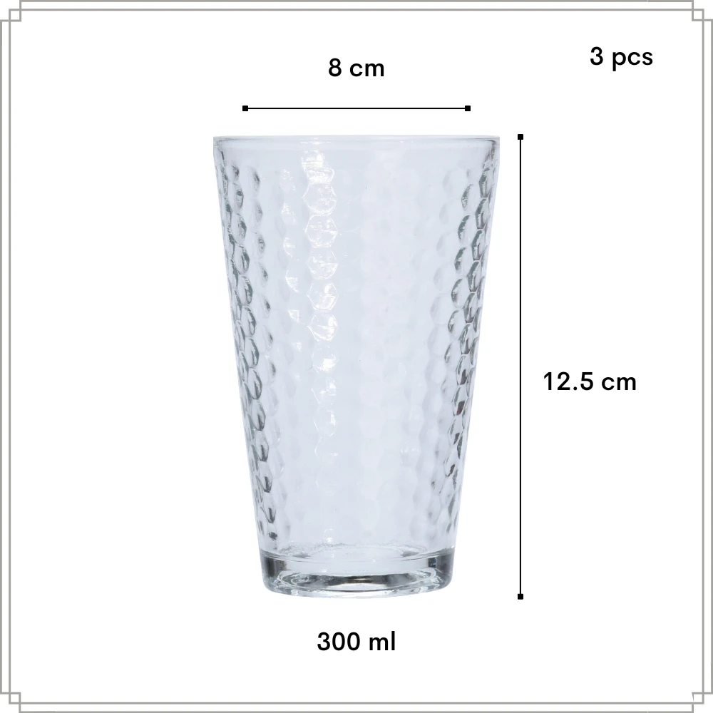 Deze drinkglazen set van Orange85 is lichtgrijs transparant van kleur. De set bestaat uit 3 glazen. Het glas is gemaakt van glas met een geribbeld patroon. Elk glas heeft een inhoud van 300 ml. De glazen hebben een inhoud van 300 ml. De glazen zijn geschikt voor in de vaatwasser.
