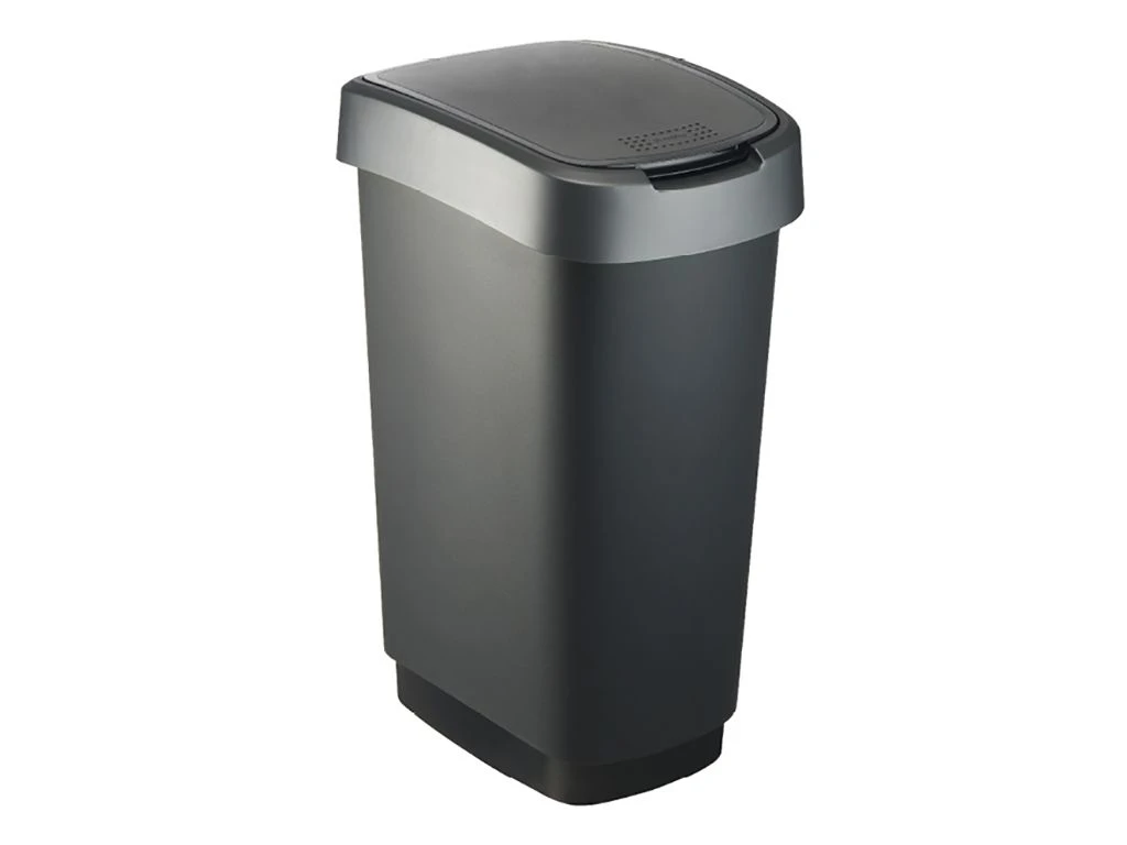 Deze rechthoekige Twist afvalbak 50L van Rotho heeft een moderne look en een robuust design. De afvalbak, uitgevoerd in donkergrijs past perfect binnen iedere inrichting. De afvalbak is vingerafdrukvrij en de vuilnisbak is gemakkelijk te reinigen met een doekje.Daarnaast is de afvalbak gemaakt van duurzaam kunststof en is hij voorzien van een handig kanteldeksel dat op 2 manieren te openen is. De vuilnisbak heeft een losse binnenring waarmee je de vuilniszak kunt bevestigen.EigenschappenAfmetingen (DxBxH): 401 x 298 x 602 mm 50 literFingerprintproofMateriaal: KunststofLosse binnenring voor bevestiging vuilniszakOver RothoMet de producten van Rotho maak je je leven echt makkelijker. Het assortiment bestaat uit verschillende zeer gebruiksvriendelijke producten van wasmanden tot opbergboxen en van schoonmaakartikelen tot handige opbergers voor in de keuken. Ieder item is gemaakt van hoogwaardig en zeer sterk kunststof. Ieder Rotho product kan dus jaren mee zowel op je werkplek als in huis.