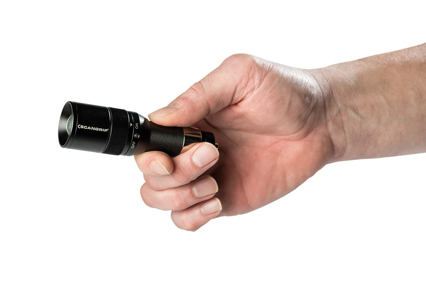 De Scangrip zaklamp Flash 12V is de ideale zaklamp voor onderweg. Deze compacte zaklamp laadt u namelijk op in de sigarettenaansteker-aansluiting van uw wagen. Ondanks de compacte afmeting verliest de lamp niets aan kracht: de lichtbundel van 130 lumen reikt tot wel 100 meter en is daardoor perfect voor tal van inspectietaken. Door aan de lens te draaien verstelt u de uitstraalhoek van 10° naar 70° zodat u altijd profiteert van de meest optimale lichtbundel. Wanneer u de lamp wil opladen kunt u het stevige rubber handvat er eenvoudig vanaf halen. Zonder handvat weegt de lamp 106 gram en met de afdekking erop 118 gram. Afmetingen bedragen: diameter 30mm en lengte 105mm.Onderweg opladen in de sigarettenaansteker-aansluiting in uw wagen Stevig rubber handvat dat eenvoudig gedemonteerd kan worden voor het opladen van de zaklamp Verstelbare uitstraalhoek van 10° tot 70° door aan de lens te draaien Compacte zaklamp met hoge prestaties