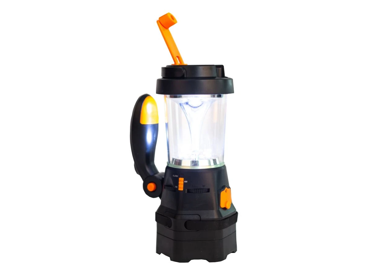 Voor iedereen die graag buiten leeft, maar niet zonder comfort wil. Naast verschillende lichtstanden heeft deze lantaarn een ingebouwde AM/FM-radio, een powerbank voor het opladen van mobiele telefoons en dergelijke en een SOS-signaal. En het werkt allemaal onafhankelijk van stroombronnen, gewoon met een handslinger of dynamo.