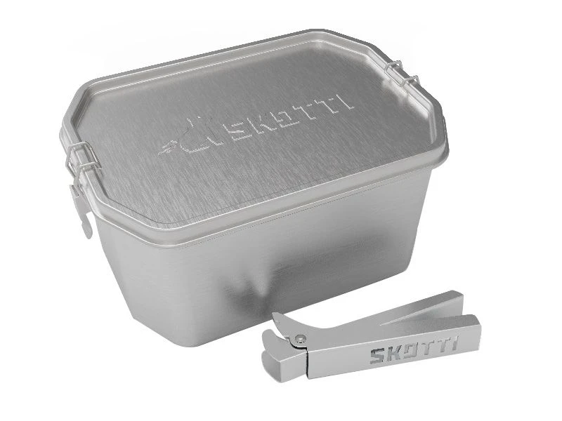 Deze robuuste, milieuvriendelijke en duurzame box is niet alleen perfect voor je outdoor avonturen, maar ook als lunchbox voor werk, universiteit of school. De bijgeleverde tang maakt het veilig en eenvoudig om de Boks te hanteren, zelfs wanneer deze heet is. Plaats de Boks op je Skotti Grill en je kunt naast het grillen van vlees of vis gelijktijdig andere gerechten bereiden.