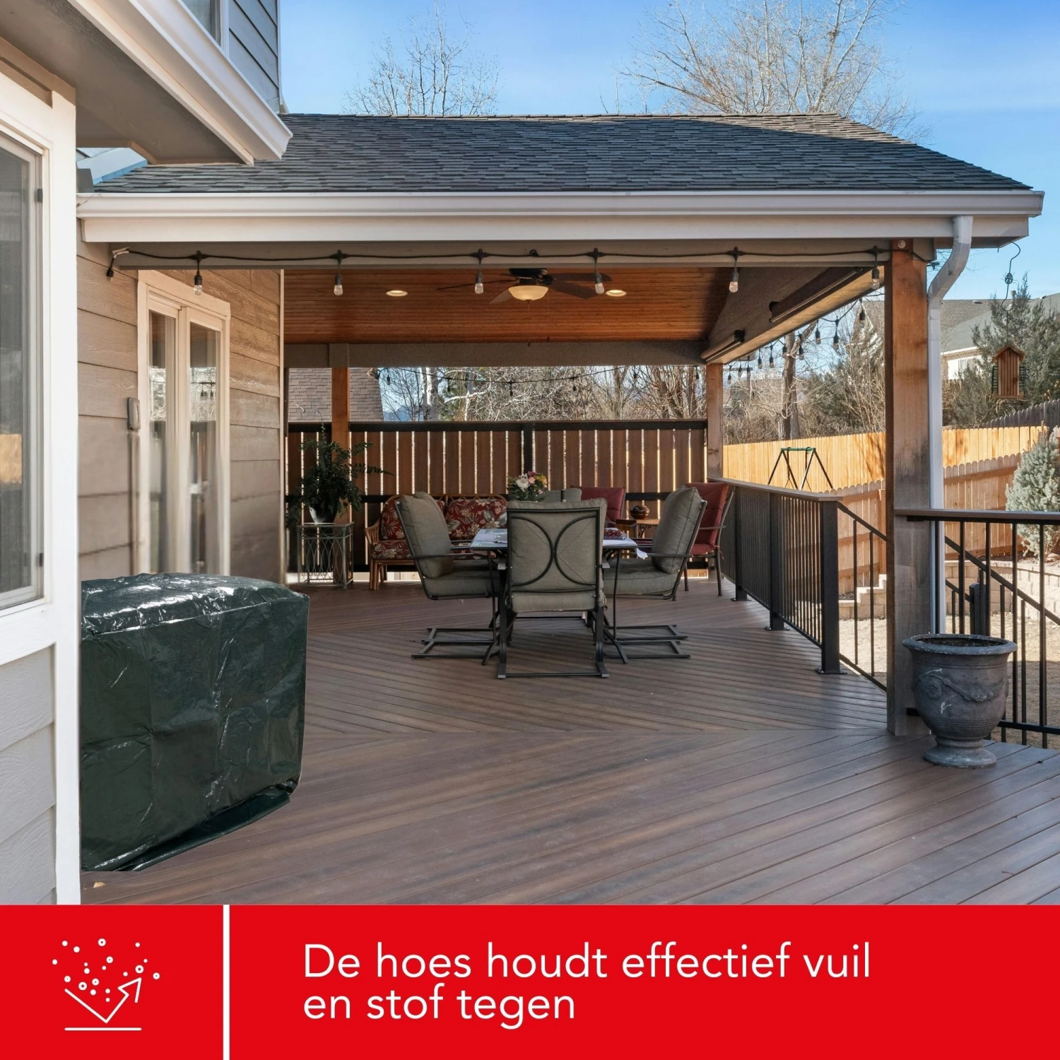 Bescherm je barbecue tegen elementen en vuil met deze stevige Toolland barbecuehoes. Met een diep donkergroene tint en gemaakt van duurzaam polyethyleen, is deze rechthoekige hoes perfect voor het veilig opbergen van je grill. Of het nu na een zomerse grillavond of tijdens het off-season is, houd je barbecue in topconditie. Deze hoes past naadloos om barbecues van 110 x 70 x 100 cm en biedt een praktische oplossing voor elke tuinliefhebber.