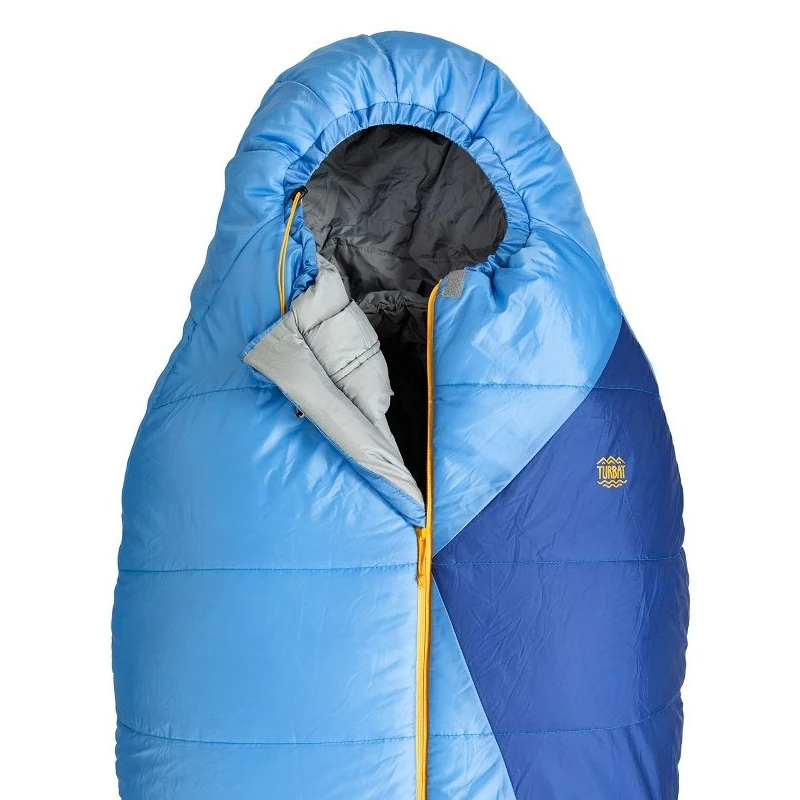 Een mooie mummyslaapzak van Turbat die geschikt is om mee te reizen of mee te wandelen in de zomer of in de tussenseizoenen.