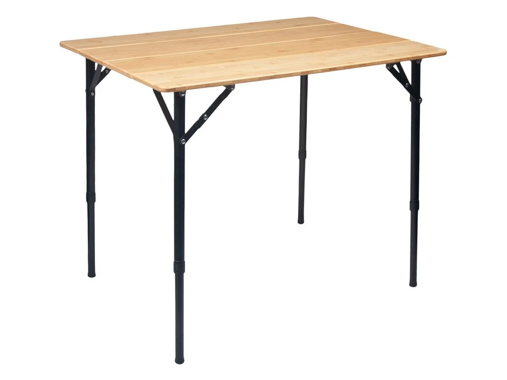 Deze licht gewicht campingtafel is ideaal doordat je het blad in 4 delen kan opvouwen, dat maakt het pakvolume gelijk een stuk aantrekkelijker. De ViaMondo Boa is verkrijgbaar in 2 of 4 persoons uitvoering. De poten zijn traploos verstelbaar zodat je bij ongelijke ondergrond de tafel stabiel kunt plaatsen. Het tafelblad is gemaakt van bamboe en het onderstel van aluminium.